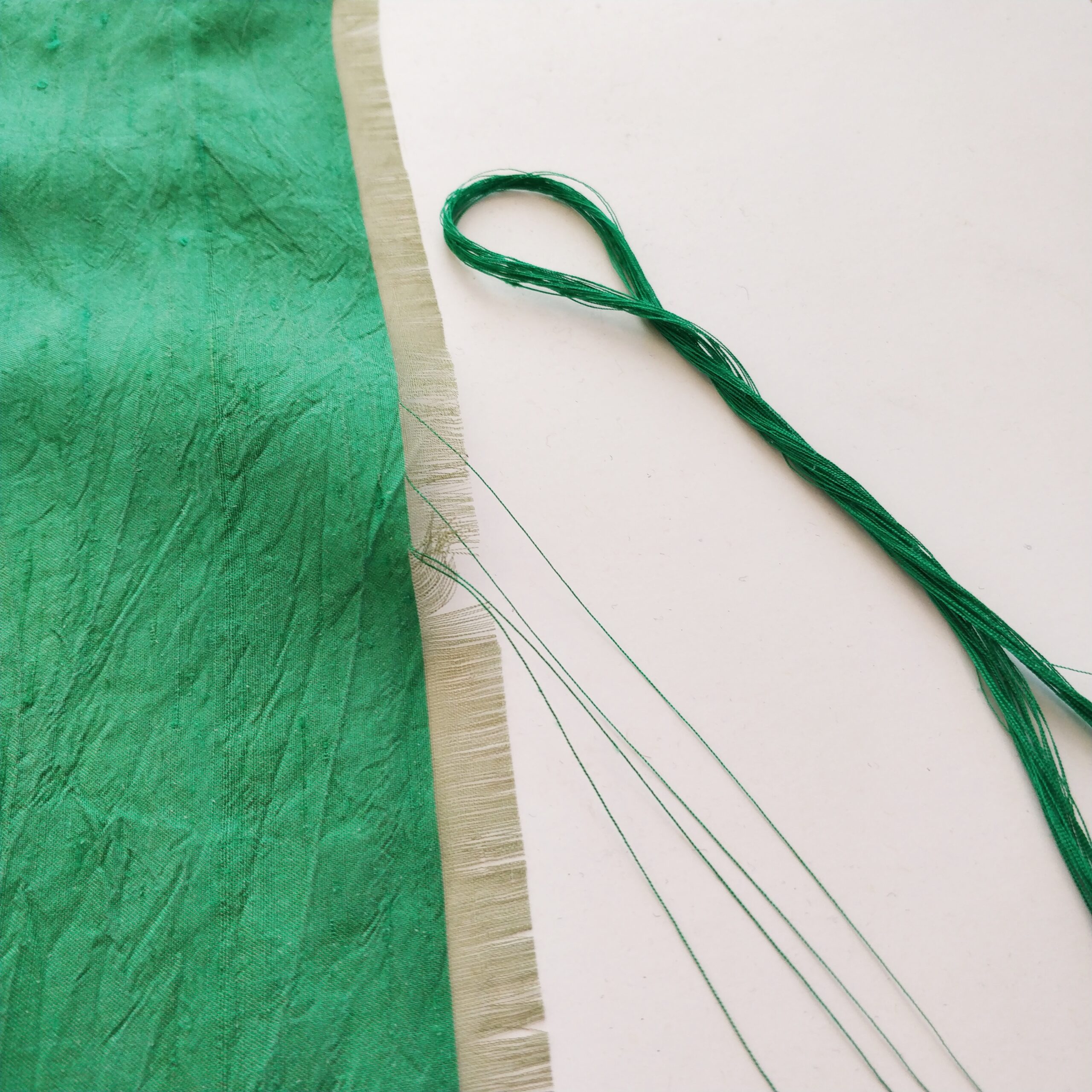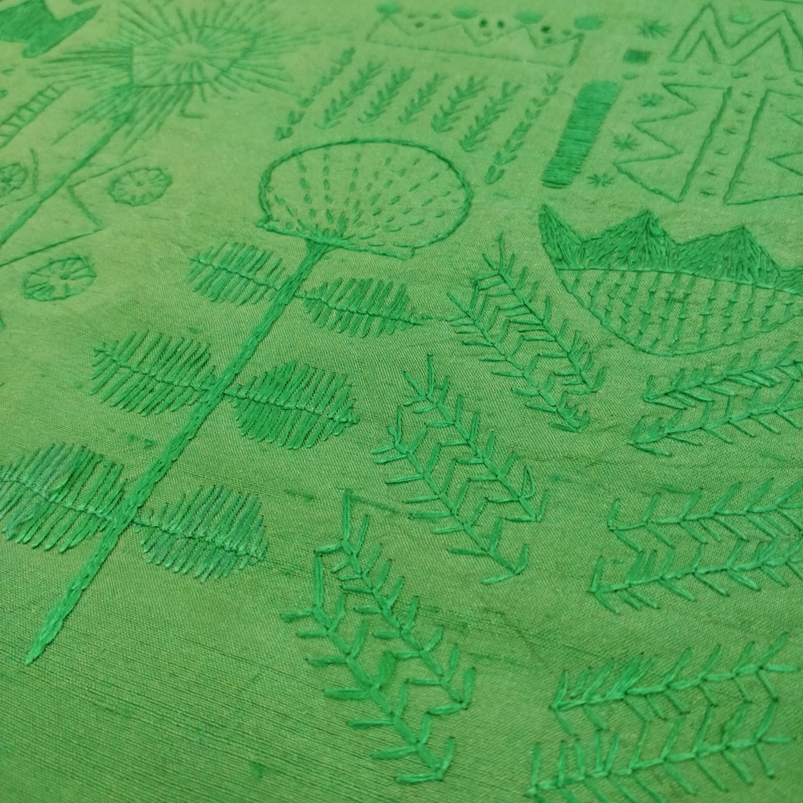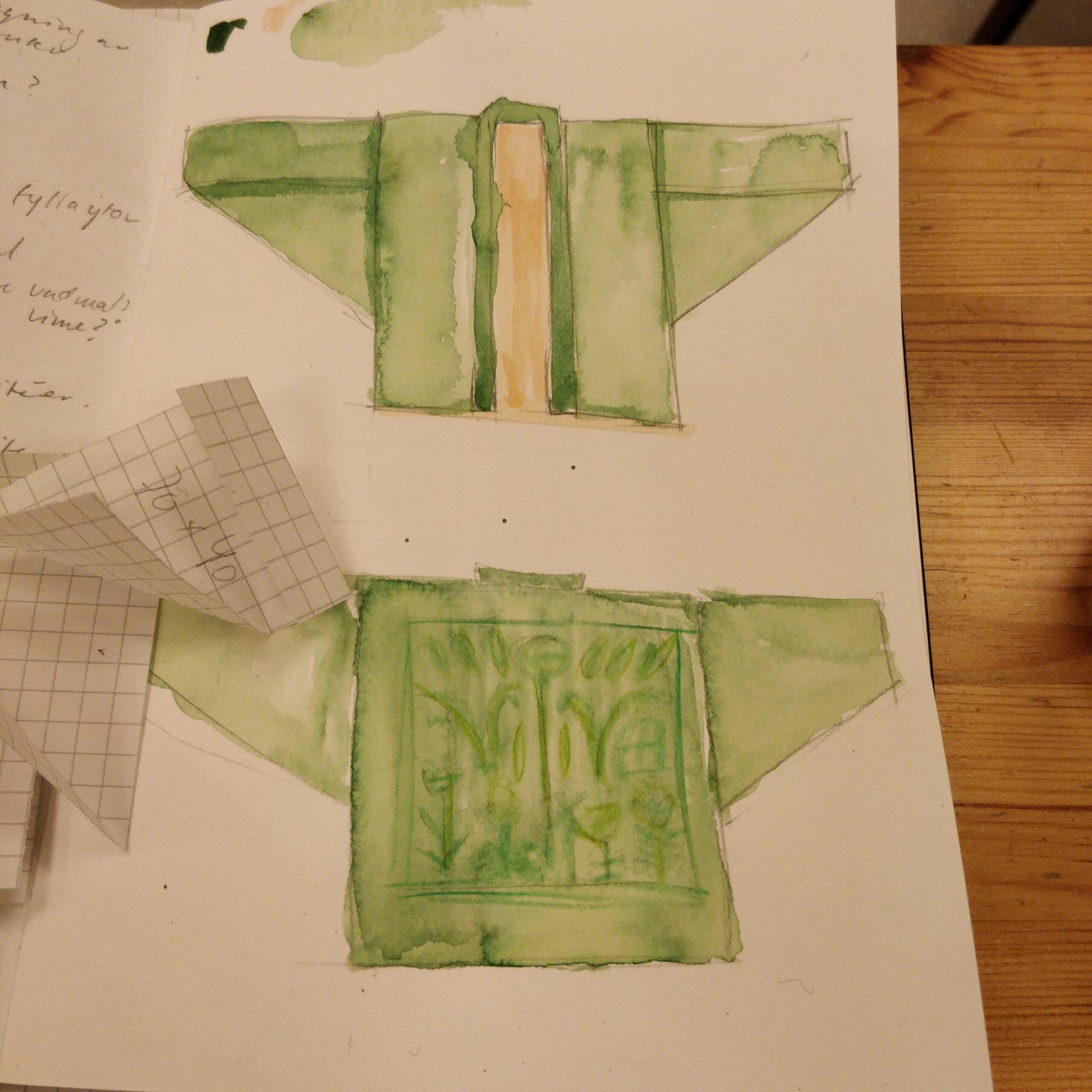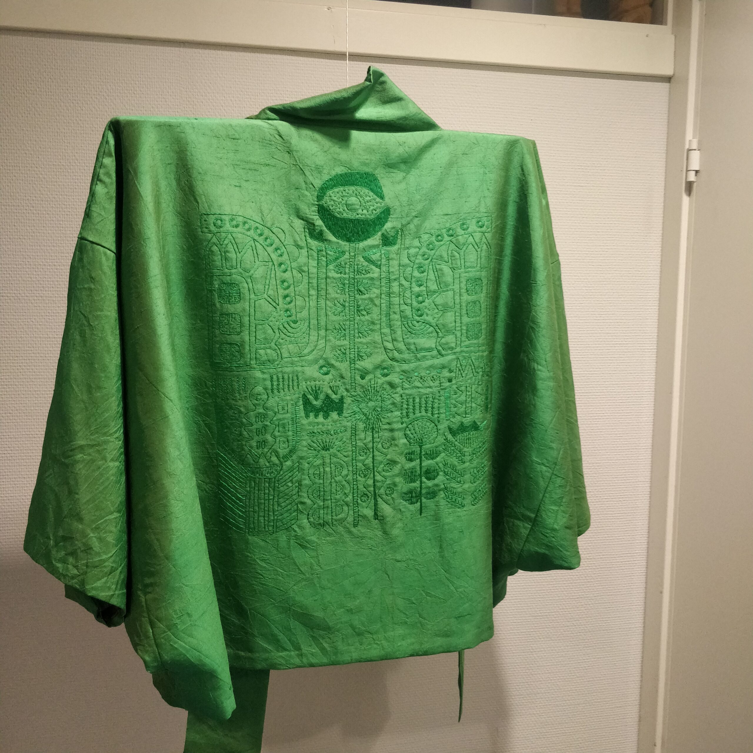 GRÖNSKAN – THE VERDURE. Kimono jacket with embroidery on the back. Embroidered with threads from the fabric itself in free stitches.